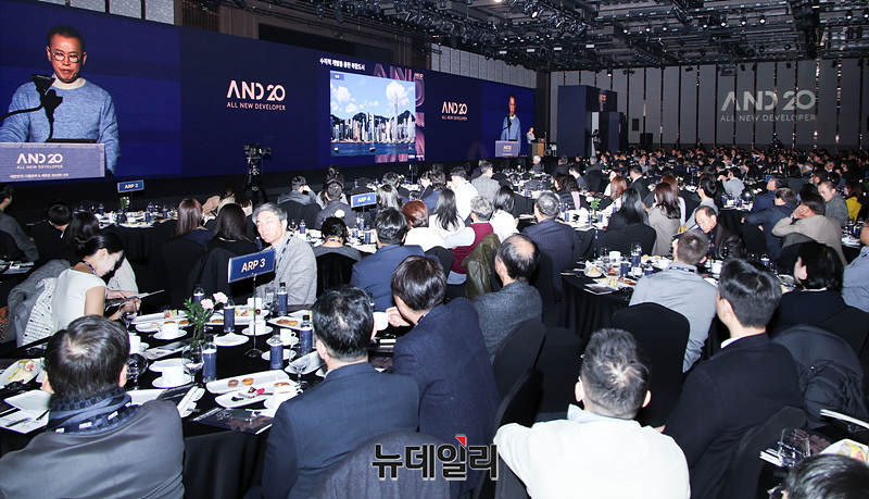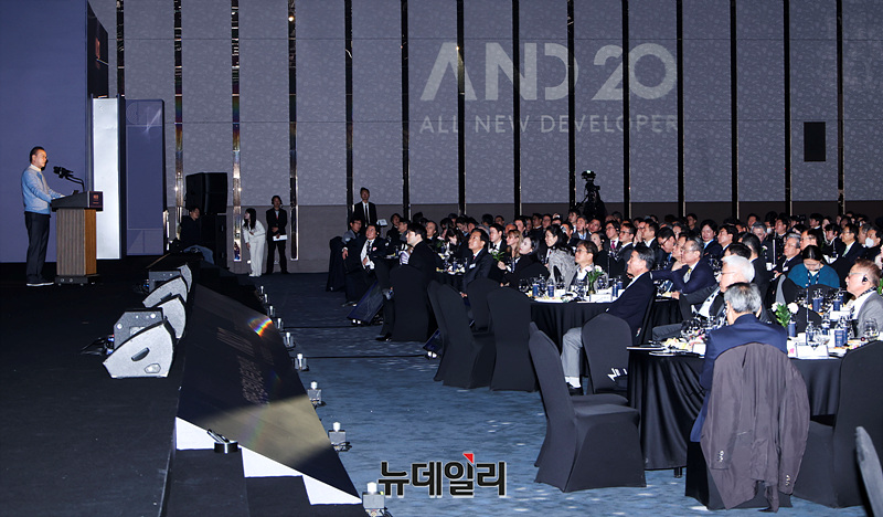 문주현 엠디엠그룹 회장이 20일 오전 서울 강남구 그랜드 인터컨티넨탈 서울 파르나스 그랜드볼룸에서 열린 글로벌 디벨로퍼 컨퍼런스에서 주제발표를 하고 있다.